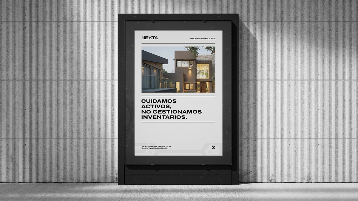 Nexta es una boutique de bienes raíces especializada en el segmento de ventas de alta categoría. Su identidad se fundamenta en un modelo de servicio exclusivo y personalizado, diseñado para que cada cliente sienta que su inmueble es tratado con la misma dedicación que si fuera propio. Nexta no gestiona inventarios, cuida activos, transformando la gestión inmobiliaria en un compromiso absoluto bajo una premisa: Tu propiedad, nuestra prioridad. Aportamos: Dirección de arte, identidad visual, identidad corporativa.